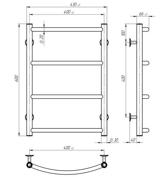 Сушка для рушників водяна Deffi Класик П4 400х600 бічне праве підключення білий C.DK.60.40.4.W.C