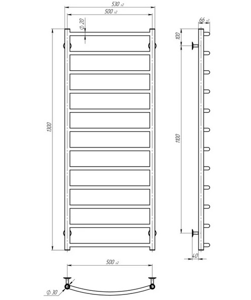 Водяний сушка для рушників зарекомендувала себе як зручний, надійний і практичний виріб для ванної кімнати будь-якого типу. ТМ Deffi пропонує своєму покупцеві продукт з високоякісної нержавіючої сталі, який не тільки ідеально підійдевашого інтер'єру, а й забезпечить своєю функціональністю затишок, комфорт та максимальну тепловіддачу в приміщенні. Перемички мають форму дуг, які надають цій моделі класичного дизайну.