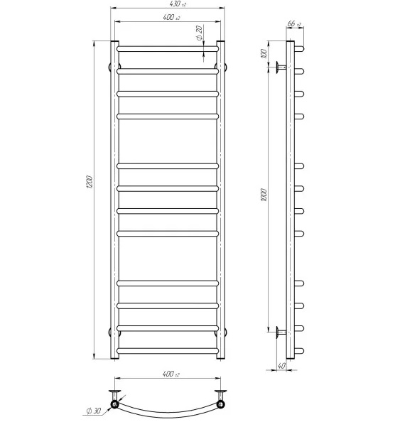 Сушка для рушників водяна Deffi Класик Еліт П12 400х1200 бічне ліве підключення хром C.KE.120.40.12.C.B