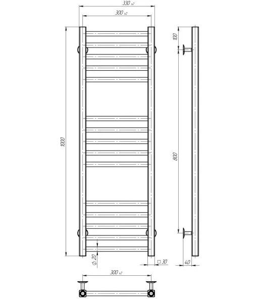 Сушка для рушників водяна Deffi Lima П15 300х1000 бічне праве підключення хром A.LI.100.30.15.C.C
