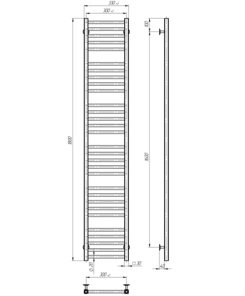 Сушка для рушників водяна Deffi Lima П30 300х1800 бічне праве підключення білий A.LI.180.30.30.W.C