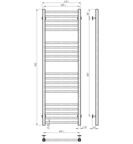 Сушка для рушників водяна Deffi Lima П20 400х1300 нижнє підключення чорний A.LI.130.40.20.B.A