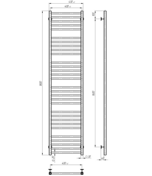 Сушка для рушників водяна Deffi Lima П30 400х1800 бічне праве підключення білий A.LI.180.40.30.W.C