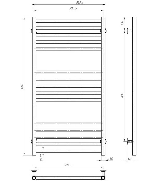 Сушка для рушників водяна Deffi Lima П15 500х1000 бічне праве підключення хром A.LI.100.50.15.C.C