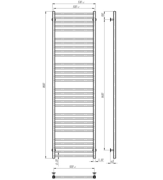 Сушка для рушників водяна Deffi Lima П30 500х1800 бічне ліве підключення хром A.LI.180.50.30.C.B