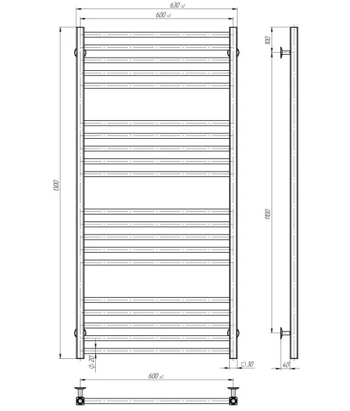 Сушка для рушників водяна Deffi Lima П20 600х1300 нижнє підключення білий A.LI.130.60.20.W.A