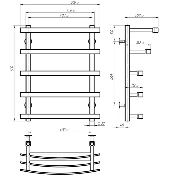 Сушка для рушників водяна Deffi Lotos П5 400х600 нижнє підключення хром A.LO.60.40.5.C.A