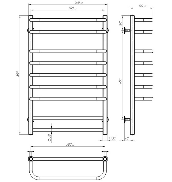 Сушка для рушників водяна Deffi Lux П9 500х800 нижнє підключення білий A.LU.80.50.9.W.A