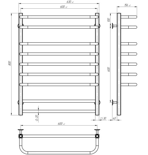 Сушка для рушників водяна Deffi Lux П9 600х800 нижнє підключення хром A.LU.80.60.9.C.A