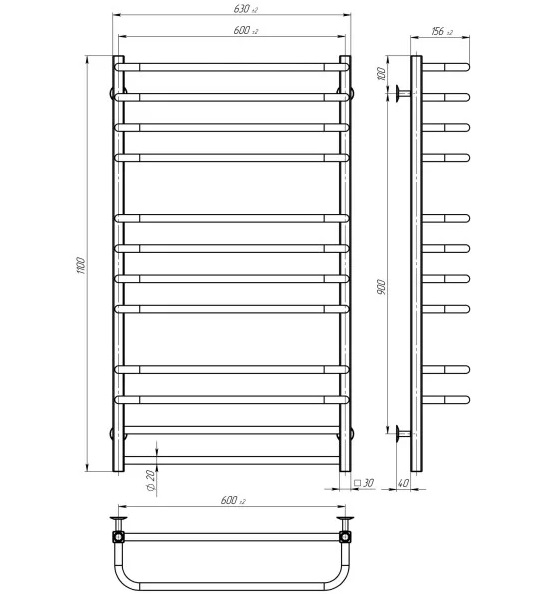 Сушка для рушників водяна Deffi Lux П12 600х1100 бічне ліве підключення білий A.LU.110.60.12.W.B