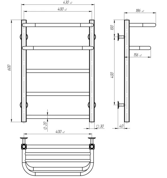 Сушка для рушників водяна Deffi Lux Hotel П5 400х600 нижнє підключення білий A.LH.60.40.5.W.A