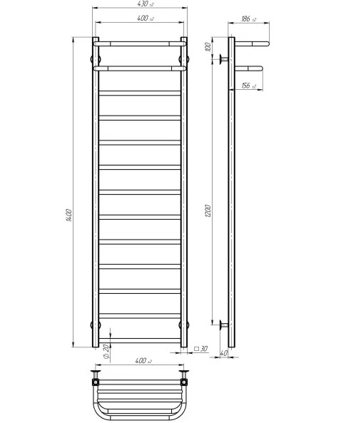 Сушка для рушників водяна Deffi Lux Hotel П13 400х1400 бічне праве підключення чорний A.LH.140.40.13.B.C