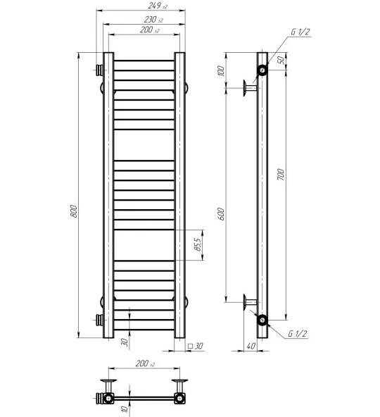 Сушка для рушників водяна Deffi Magnus П12 200х800 бічне ліве підключення білий A.MA.80.20.12.W.B
