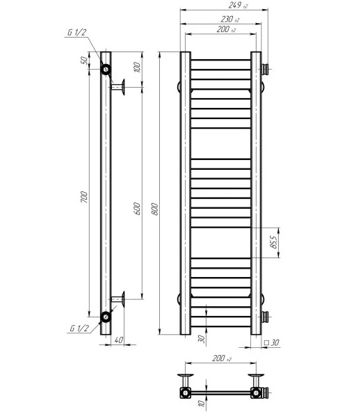 Сушка для рушників водяна Deffi Magnus П12 200х800 бічне праве підключення хром A.MA.80.20.12.C.C