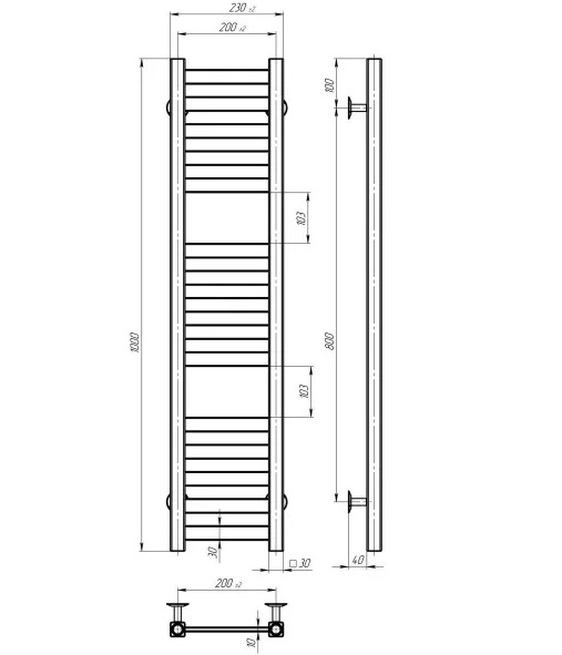 Сушка для рушників водяна Deffi Magnus П15 200х1000 нижнє підключення білий A.MA.100.20.15.W.A