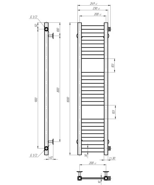 Сушка для рушників водяна Deffi Magnus П15 200х1000 бічне ліве підключення чорний A.MA.100.20.15.B.B