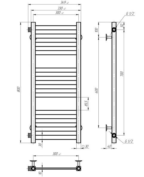 Сушка для рушників водяна Deffi Magnus П12 300х800 бічне ліве підключення хром A.MA.80.30.12.C.B