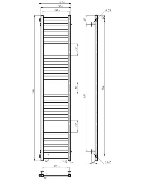 Сушка для рушників водяна Deffi Magnus П20 300х1600 бічне ліве підключення хром A.MA.160.30.20.C.B