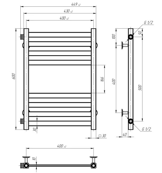 Сушка для рушників водяна Deffi Magnus П8 400х600 бічне праве підключення хром A.MA.60.40.8.C.C