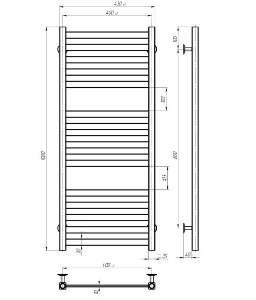 Сушка для рушників водяна Deffi Magnus П15 400х1000 нижнє підключення хром A.MA.100.40.15.C.A
