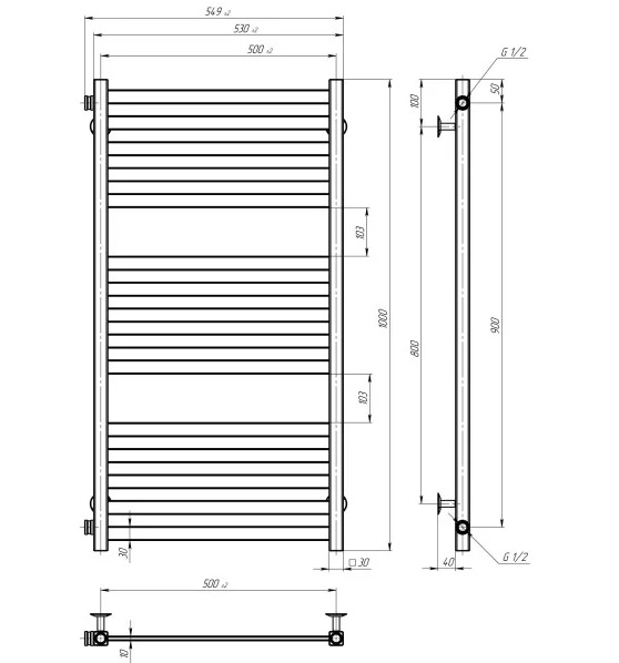 Сушка для рушників водяна Deffi Magnus П15 500х1000 бічне ліве підключення чорний A.MA.100.50.15.B.B