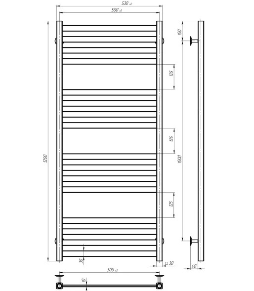 Сушка для рушників водяна Deffi Magnus П16 500х1200 нижнє підключення хром A.MA.120.50.16.C.A