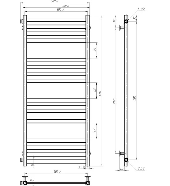 Сушка для рушників водяна Deffi Magnus П16 500х1200 бічне ліве підключення хром A.MA.120.50.16.C.B