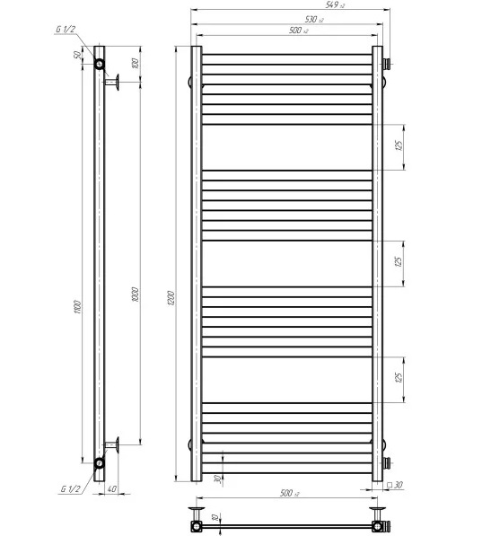 Сушка для рушників водяна Deffi Magnus П16 500х1200 бічне праве підключення чорний A.MA.120.50.16.B.C