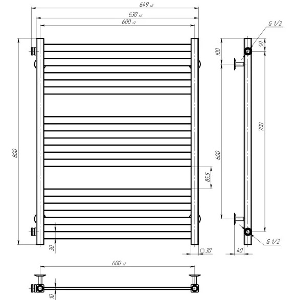 Сушка для рушників водяна Deffi Magnus П12 600х800 бічне ліве підключення хром A.MA.80.60.12.C.B