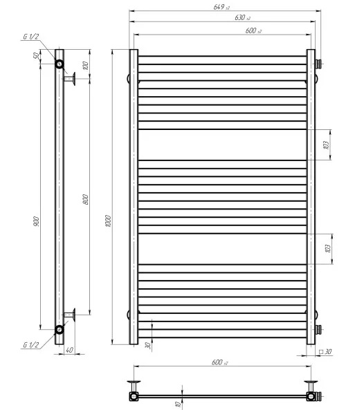 Сушка для рушників водяна Deffi Magnus П15 600х1000 бічне праве підключення чорний A.MA.100.60.15.B.C