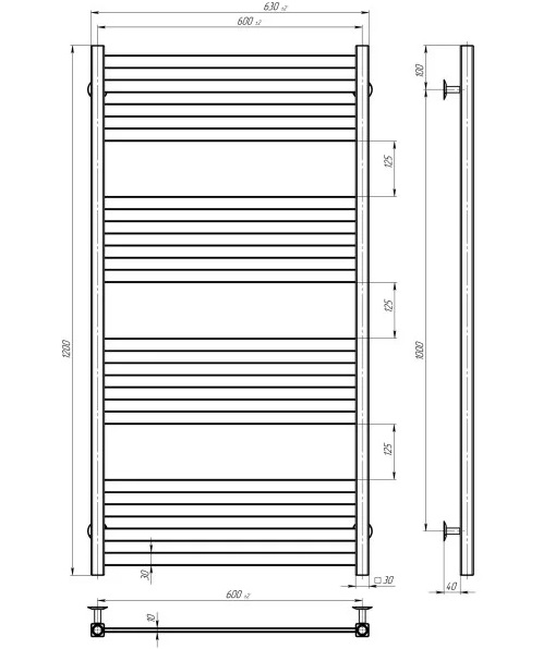 Сушка для рушників водяна Deffi Magnus П16 600х1200 нижнє підключення білий A.MA.120.60.16.W.A