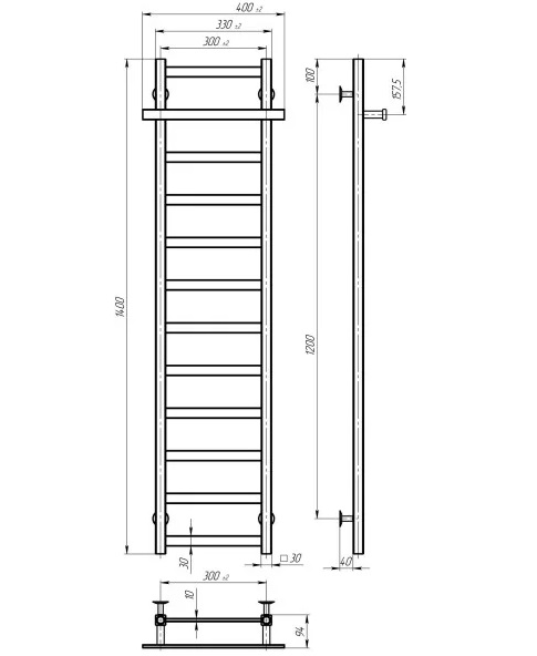 Сушка для рушників водяна Deffi Nicolе П12 300х1400 нижнє підключення чорний A.NI.140.30.12.B.A