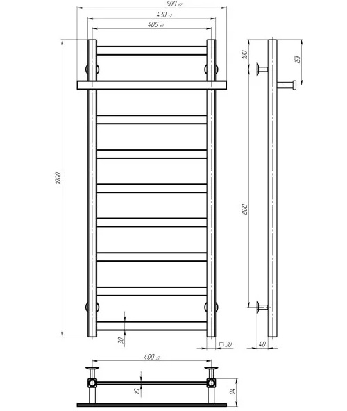 Сушка для рушників водяна Deffi Nicolе П9 400х1000 нижнє підключення білий A.NI.100.40.9.W.A