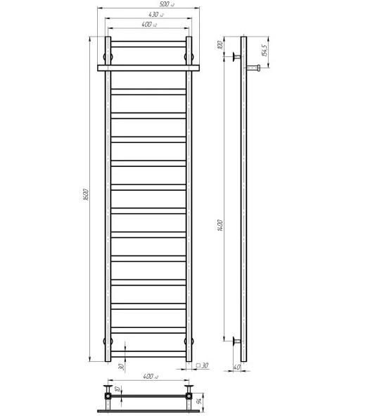 Сушка для рушників водяна Deffi Nicolе П14 400х1600 нижнє підключення хром A.NI.160.40.14.C.A