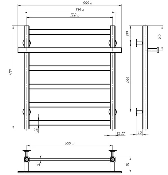 Сушка для рушників водяна Deffi Nicolе П6 500х600 нижнє підключення хром A.NI.60.50.6.C.B