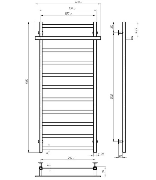 Сушка для рушників водяна Deffi Nicolе П11 500х1200 нижнє підключення білий A.NI.120.50.11.W.A