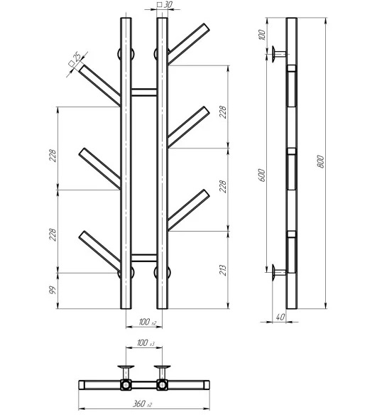 Сушка для рушників водяна Deffi Sakura П6 100х800 нижнє підключення чорний A.SR.80.10.6.B.A