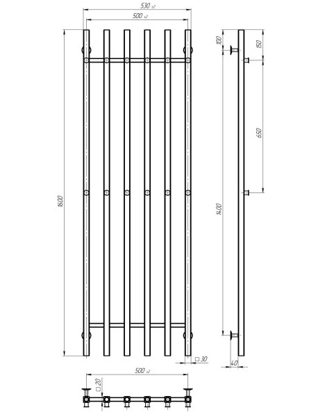 Сушка для рушників водяна Deffi Split П6 500х160 бічне ліве підключення білий A.SP.160.50.6.W.B