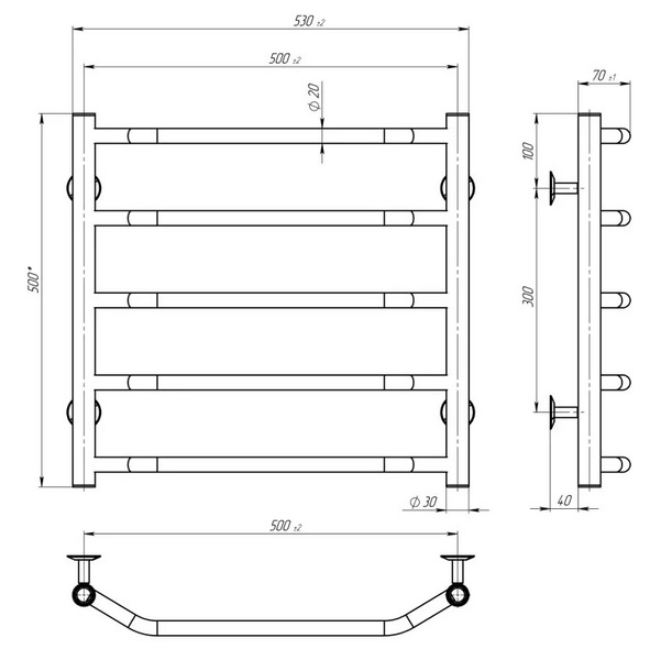 Сушка для рушників водяна Deffi Трапеція П5 500х500 бічне праве підключення білий C.TR.50.50.5.W.C