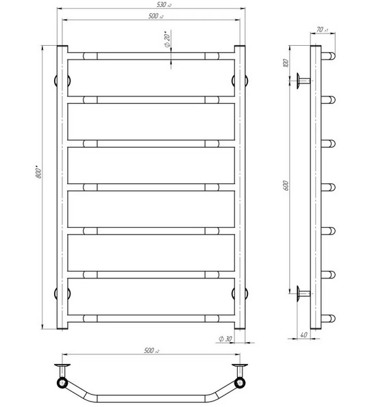 Водяний сушка для рушників зарекомендувала себе як зручний, надійний і практичний виріб для ванної кімнати будь-якого типу. ТМ Deffi пропонує своєму покупцеві продукт з високоякісної нержавіючої сталі, який не тільки ідеально підійдевашого інтер'єру, а й забезпечить своєю функціональністю затишок, комфорт та максимальну тепловіддачу в приміщенні. Перемички мають форму дуг, які надають цій моделі класичного дизайну.