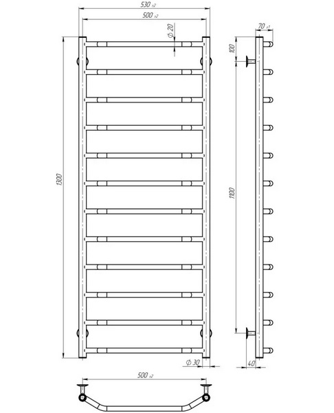 Сушка для рушників водяна Deffi Трапеція П12 500х1300 нижнє підключення чорний C.TR.130.50.12.B.A