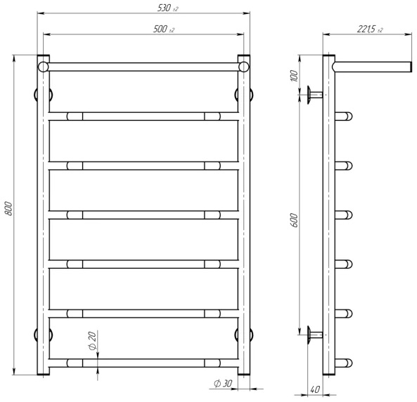 Сушка для рушників водяна Deffi Трапеція з полицею П7 500х800 бічне праве підключення хром C.TP.80.50.7.C.C