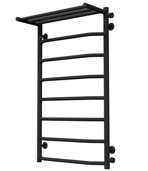 Сушка для рушників водяна Deffi Трапеція з полицею П8 500х900 бічне праве підключення чорний C.TP.90.50.8.B.C