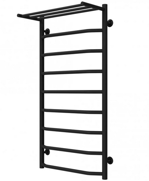 Сушка для рушників водяна Deffi Трапеція з полицею П9 500х1000 бічне ліве підключення чорний C.TP.100.50.9.B.B