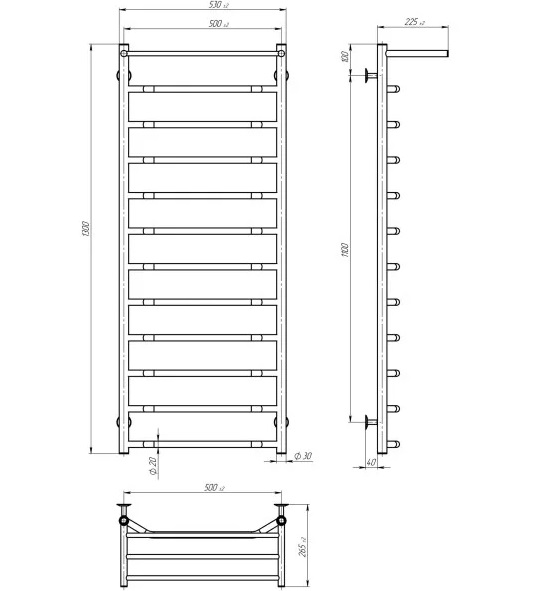 Сушка для рушників водяна Deffi Трапеція з полицею П12 500х1300 нижнє підключення хром C.TP.130.50.12.C.A