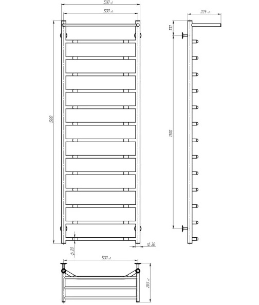 Сушка для рушників водяна Deffi Трапеція з полицею П14 500х1500 бічне праве підключення хром C.TP.150.50.14.C.C