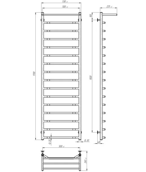 Сушка для рушників водяна Deffi Трапеція з полицею П16 500х1700 нижнє підключення хром C.TP.170.50.16.C.A
