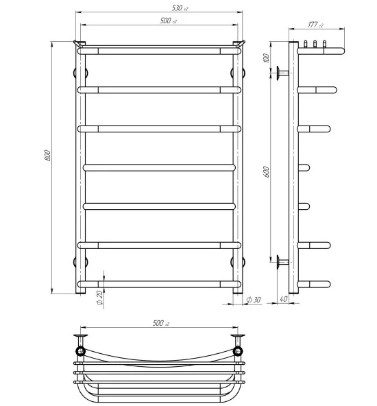 Сушка для рушників водяна Deffi Юність П7 500х800 бічне праве підключення хром C.YU.80.50.7.C.C