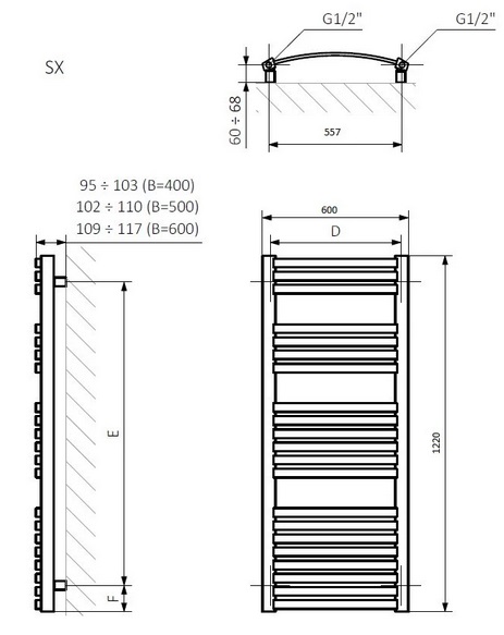 Сушка для рушників водяна Terma Dexter 122х60 см SX хром WGDEX122060KCROSX