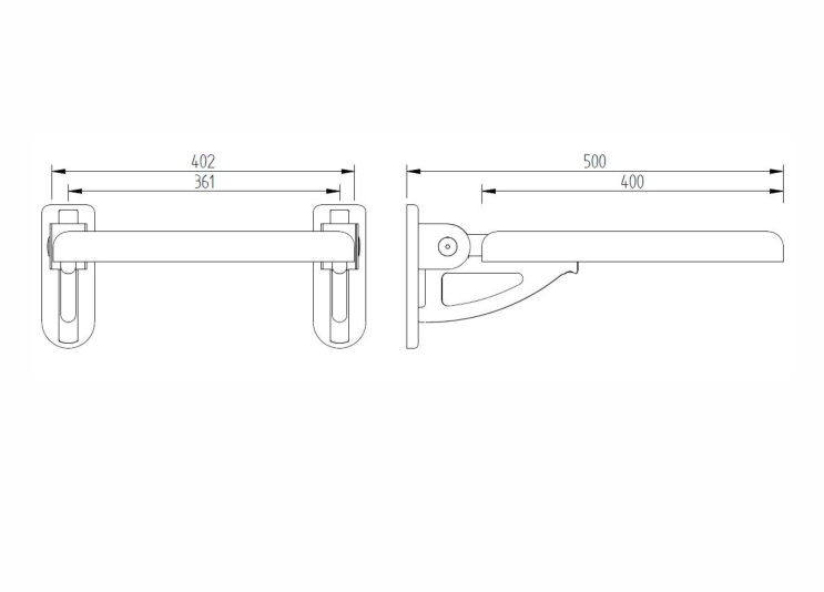 - Кріпиться до стіни за допомогою двох пластин 100 x 165 x 3 мм, з отворами для 4 болтів.